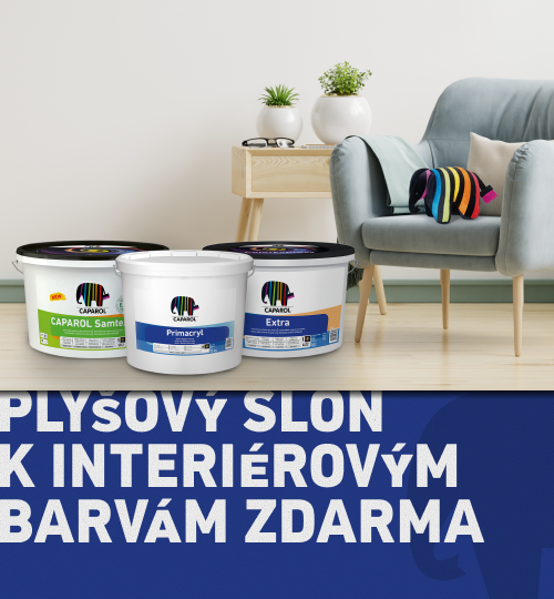 Při koupi 4 balení interiérových barev: CAPAROL Samtex 3, Extra nebo Primacryl o velikosti od 10 l / 15 kg, získáte malého plyšového slona Caparol jako dárek.